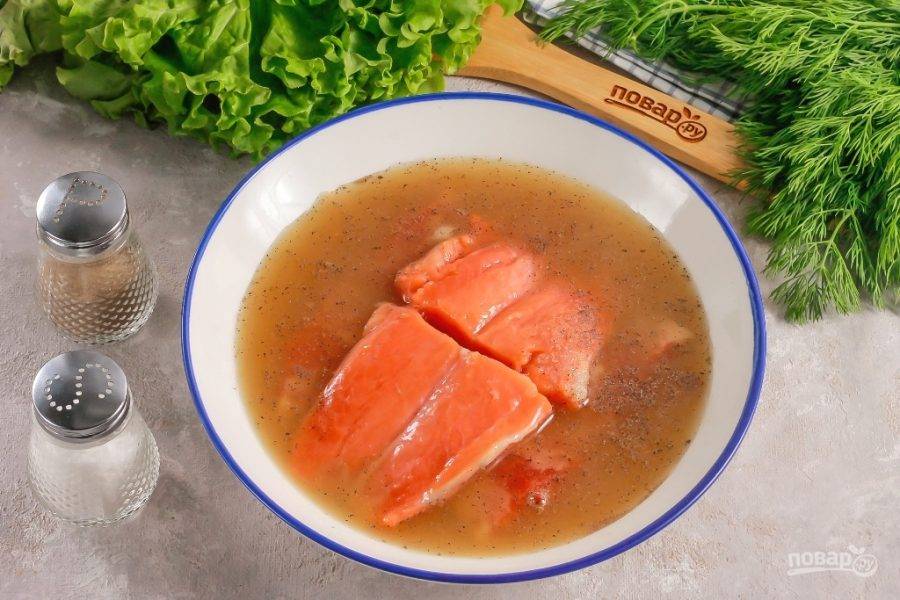 Подготовьте указанные ингредиенты. С кусочков или тушки форели очистите чешую (можно просто срезать кожу, оставляя лишь мякоть), промойте и обсушите бумажными салфетками.