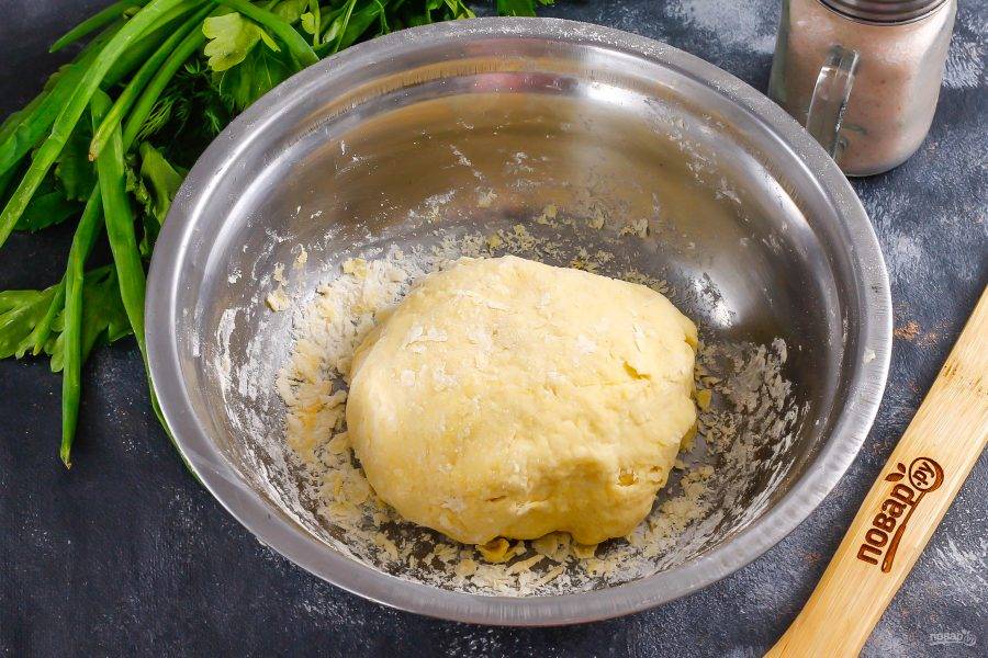 Тщательно вымешайте все компоненты и замесите плотное тесто. Поместите его на 10 минут в холодильник.