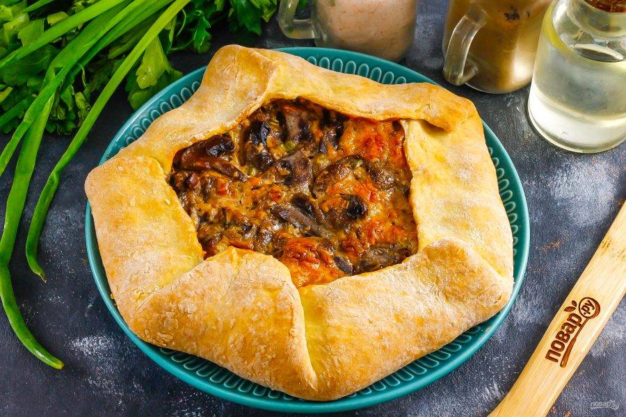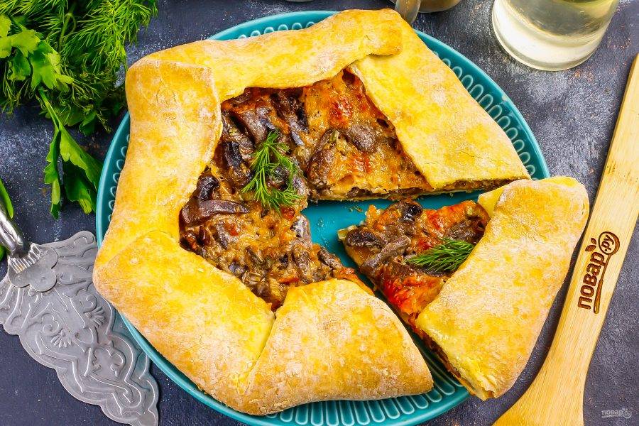 Ароматная французская галета — лучшее блюдо для перекуса, обеда или ужина. После остывания ее можно взять с собой на пикник, на работу или в поездку. Начинка готовится из шампиньонов, сметаны и сыра.