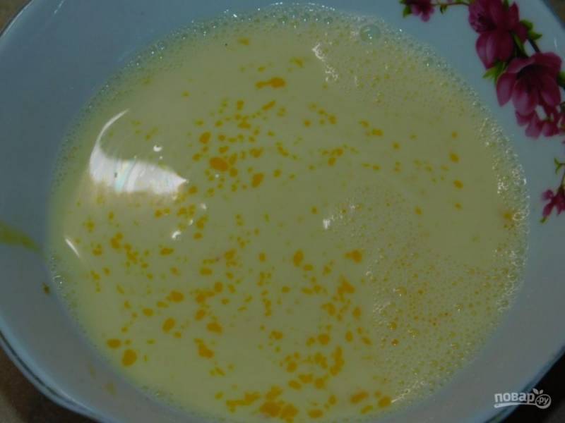 В мисочке взбейте молоко, яйцо и сахарную пудру.