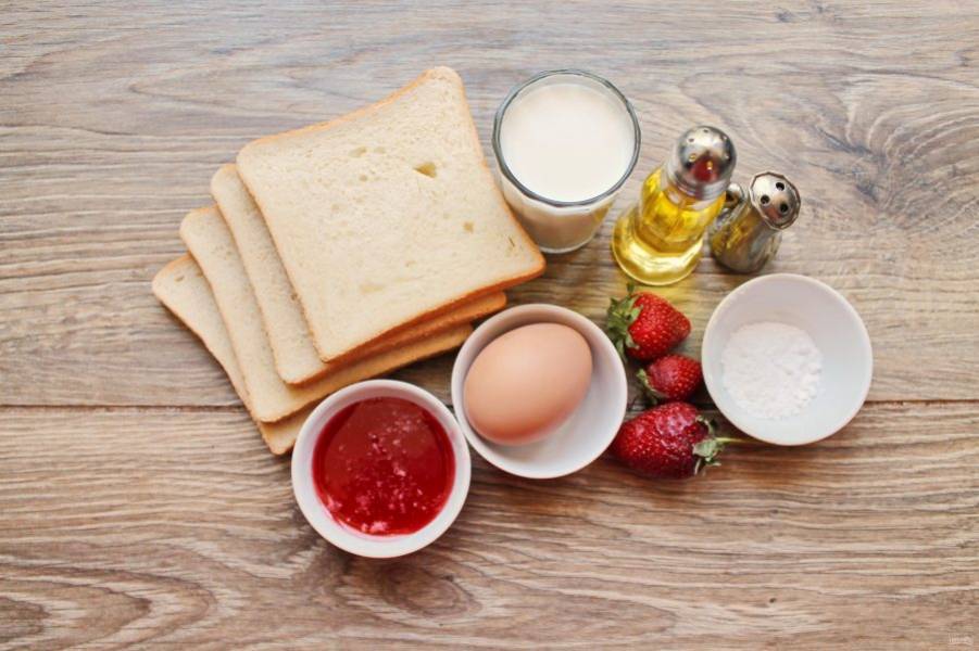 Подготовьте все необходимые ингредиенты для приготовления французских клубничных тостов.