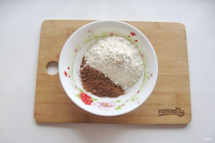 Перемешайте какао с мукой.