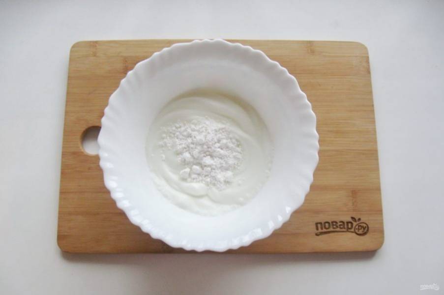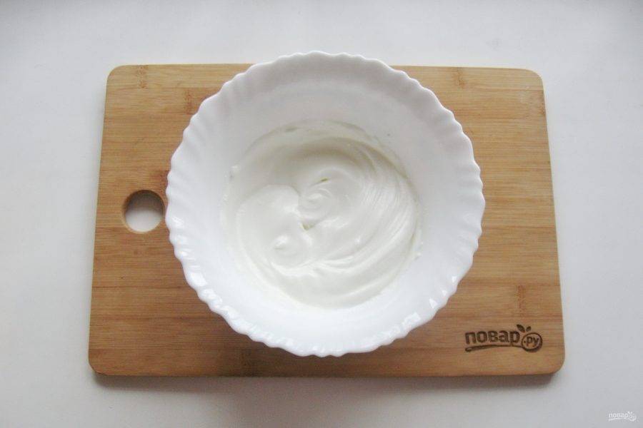 Взбейте белок с сахарной пудрой.