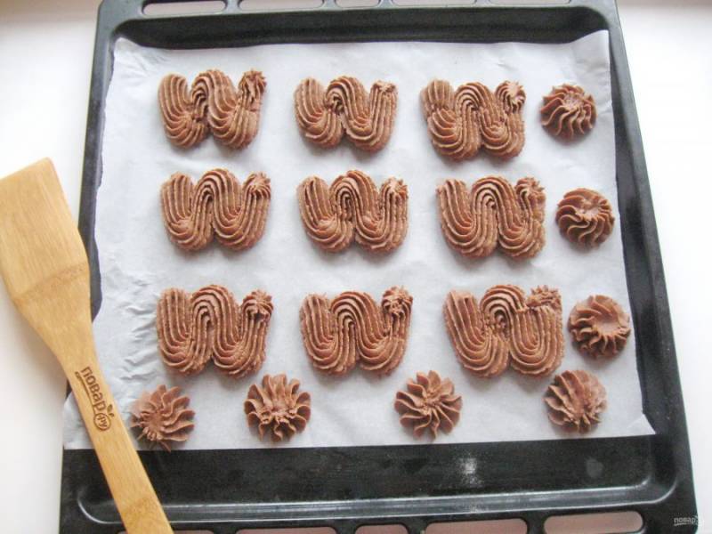 С помощью кулинарного мешка с насадкой "звездочка" отсадите тесто на противень в виде английской буквы W.