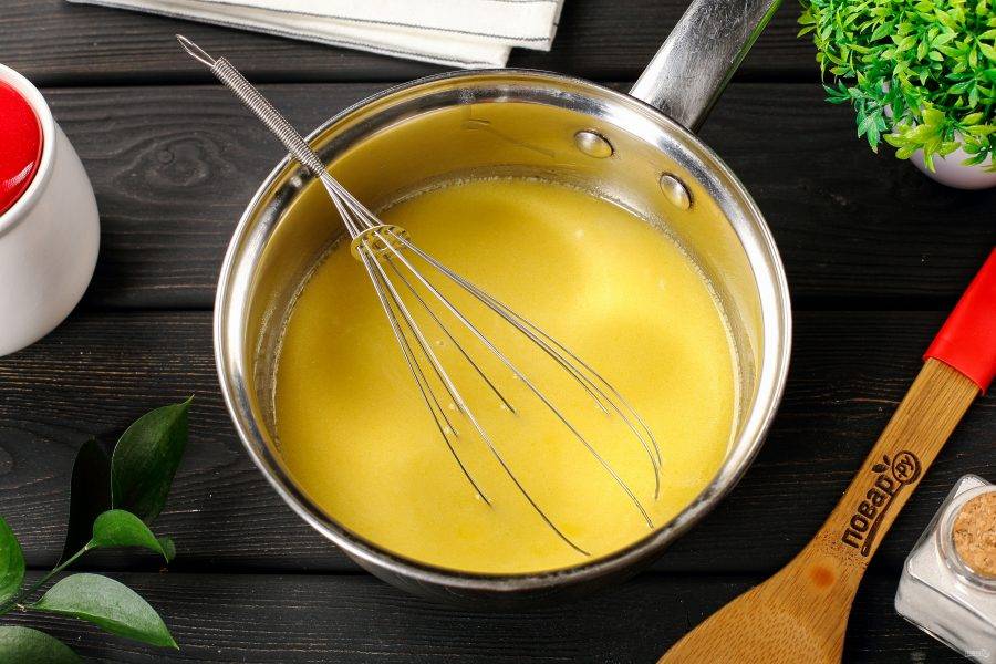 На небольшом огне, постоянно помешивая, держите пока масло полностью не растает.