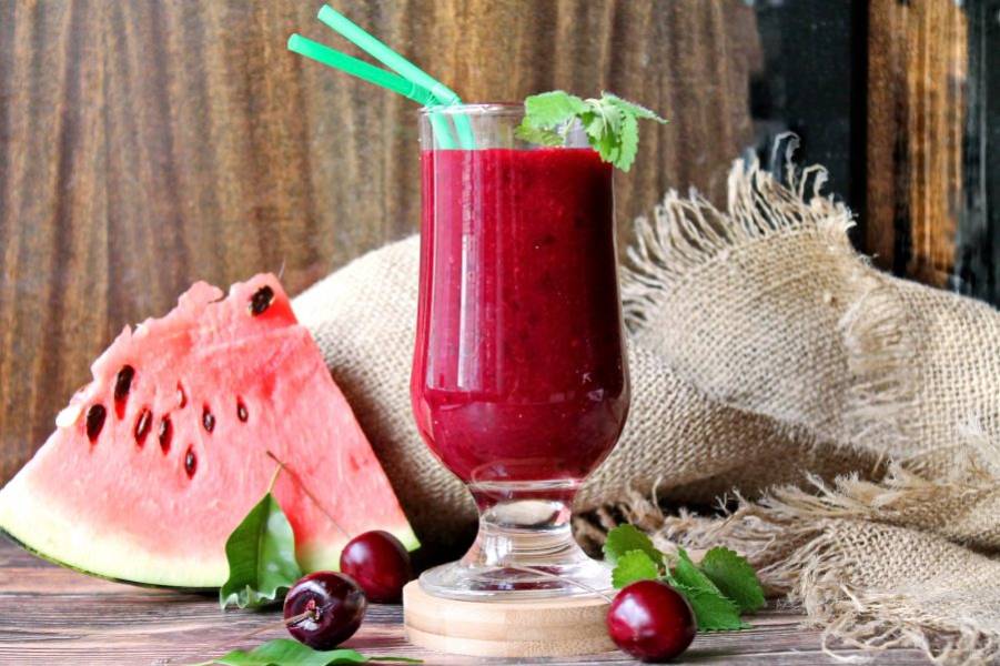 Фреш из черной смородины, вишни и арбуза не только прекрасно удаляет жажду в жаркий день, но и заряжает энергией и витаминами. Все просто и очень вкусно. Берите рецепт на вооружение!