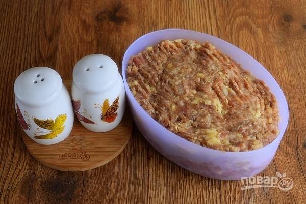 Соедините все ингредиенты и тщательно вымесите фарш. Если у вас есть время, дайте фаршу постоять минимум полчаса в холодильнике. Тогда все специи и травы "подружатся" и придадут фаршу насыщенный аромат.