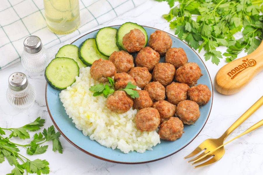 Выложите аппетитные фрикадельки на тарелку и подайте к столу вместе с гарниром. Приятного вам аппетита!
