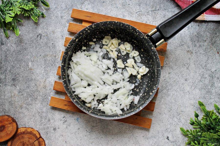 Подготовьте все необходимые ингредиенты для приготовления. Репчатый лук и чеснок почистите. Овощи вымойте и дайте воде стечь.