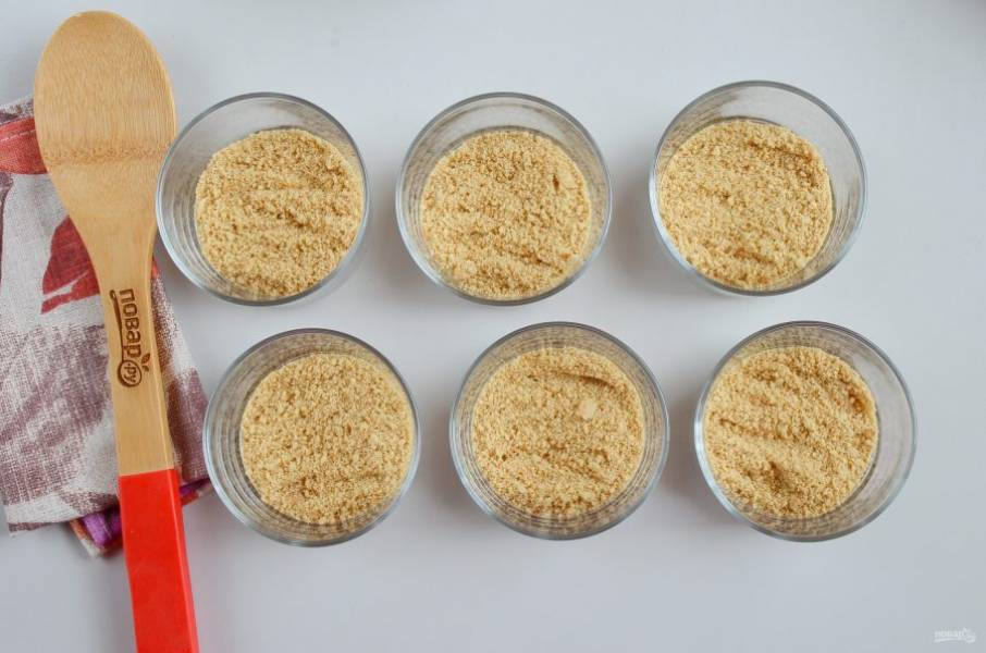 Разделите печенье между 6 стаканами, и оставьте 1 ст.л. для украшения.