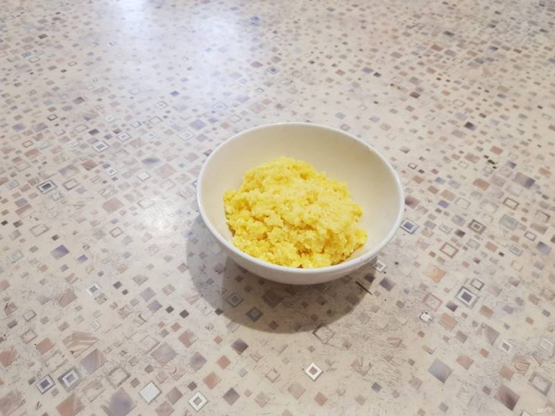 Сварите поленту согласно рецепту на упаковке.