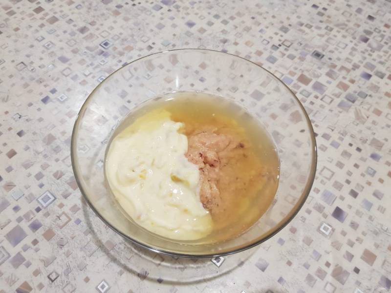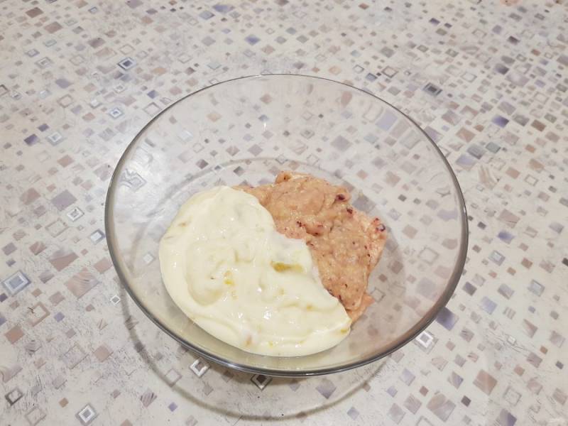 Полученную смесь поместите в миску и добавьте йогурт.