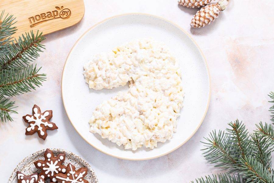 Выложите на сервировочную тарелку салат в форме силуэта головы лошади.