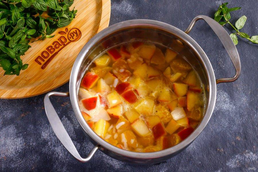 Сладкий фруктовый суп с рисом — идеальное блюдо для полдника. Он особенно понравится детям — они обожают такие ароматные блюда. Вы можете использовать любые фрукты, сочетающиеся между собой по вкусу.