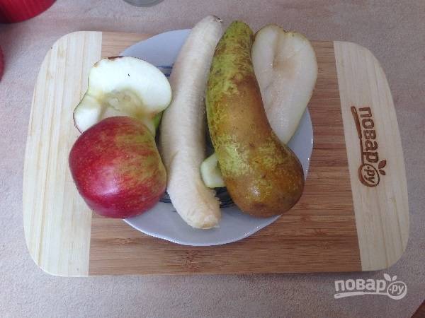 2. Очистим банан, у яблока и груши удалим сердцевину.