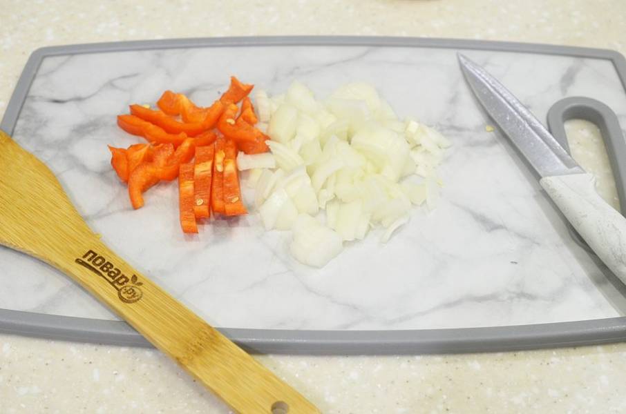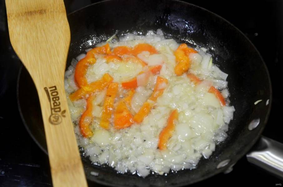 5. Добавьте в сковороду и обжаривайте все вместе минуты 3-4.