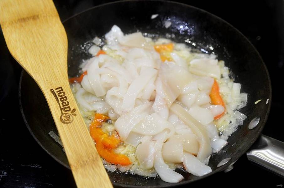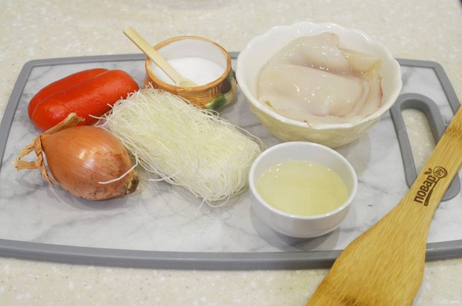 Для любителей китайских блюд предлагаю рецепт вкусного, сытного и быстрого ужина. Здесь лапша отлично сочетается с кальмаром и овощами. При этом лапша подойдет любая: рисовая, пшеничная, фасолевая.