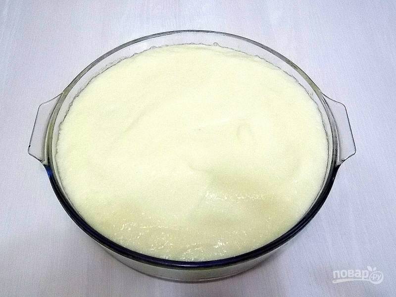 Выньте форму из духовки, смажьте верх маслом и поставьте снова на 20 минут до готовности.