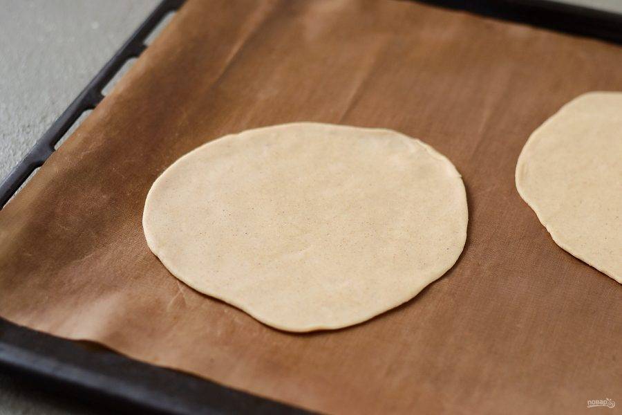 Разделите тесто на 3-4 части. Раскатайте каждую в круг.