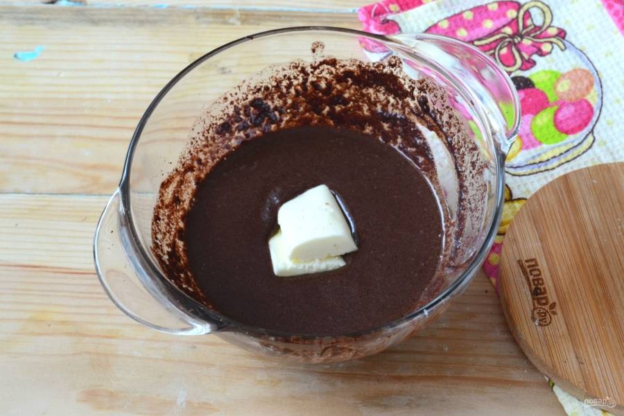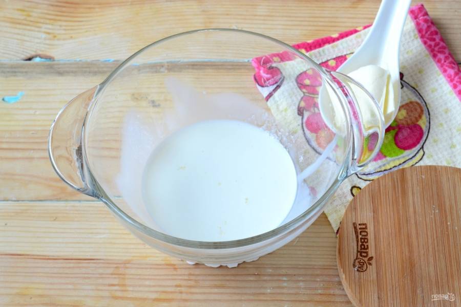Теперь самое время добавить сливочное масло. Его тоже перемешайте.