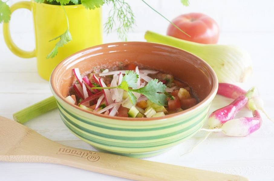 Видео рецепт "Гаспачо с редисом и фенхелем"