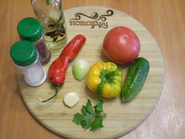 Холодный испанский суп из сырых овощей. Для его приготовления заранее хорошо охладите. Приятного аппетита!