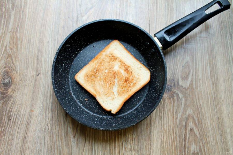 Хлеб для тостов немного обжарьте в сухой сковороде на среднем огне.