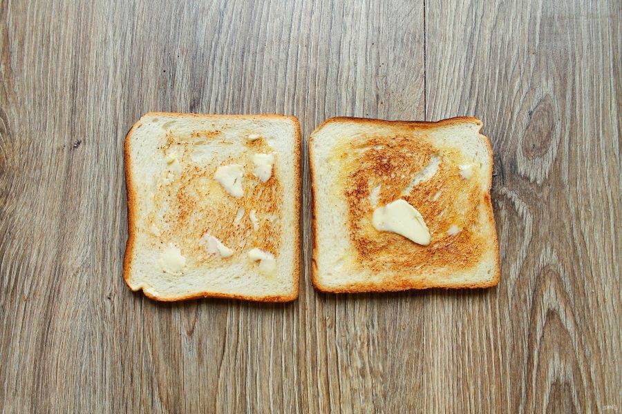 Смажьте каждый тост сливочным маслом с одной стороны.
