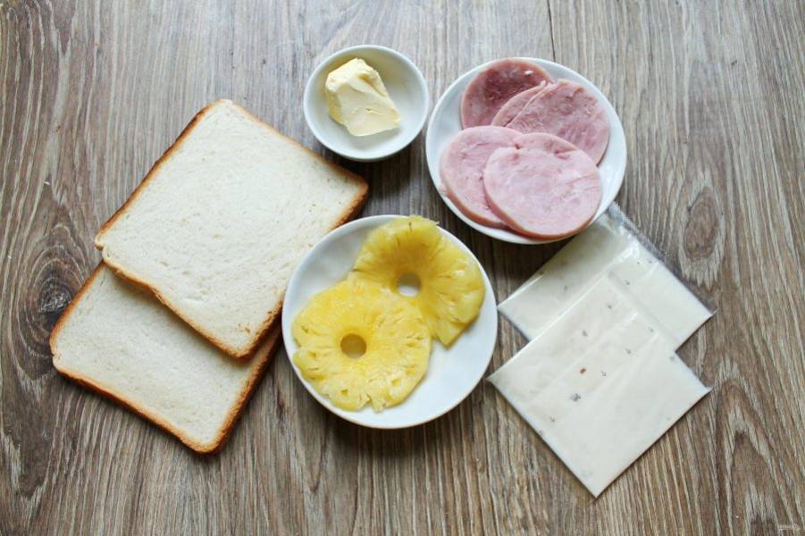 Подготовьте все необходимые ингредиенты для приготовления гавайских тостов.