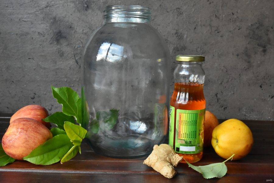 Подготовьте продукты для приготовления яблочного сидра. Банку хорошо помойте и просушите. Яблоки, купленные в магазине, желательно помыть под проточной водой. Вместо сиропа топинамбура можно использовать мед или сахар. Свежий имбирь можно заменить сухим, но не молотым.