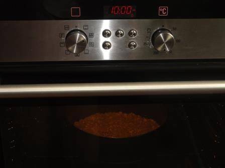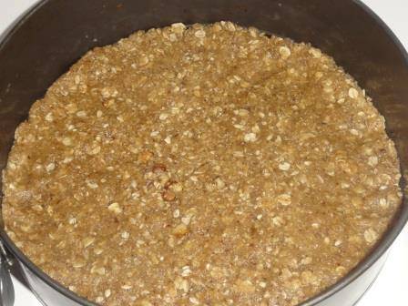 4) Выложить крошку в разъемную форму предварительно выстланную пергаментной бумагой , разровнять.