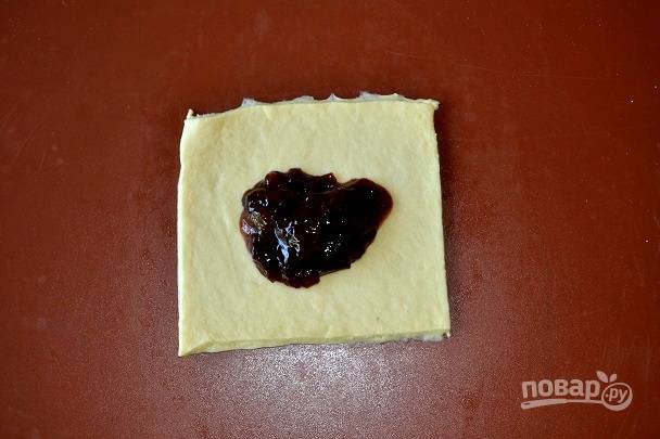 Еще через час можно приступать к основному процессу. Отщипните кусочек теста и раскатайте его тонким пластом. Нарежьте квадратиками.