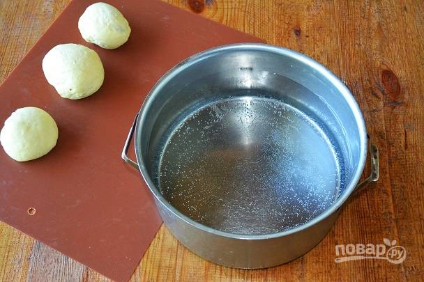 В большой кастрюле доведите до кипения воду и посолите. Одновременно рекомендую варить не больше 3 штук, так как они очень увеличиваются в размере. В кипящую воду выложите заготовки и варите после закипания под крышкой около 15 минут на медленном огне.