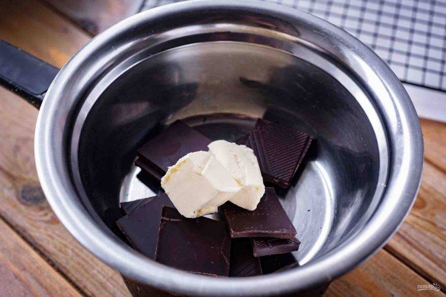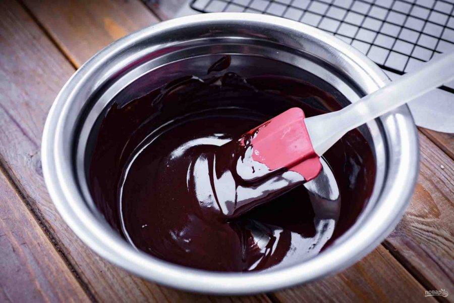 Приготовьте глазурь. Для этого на водяной бане растопите шоколад и сливочное масло.