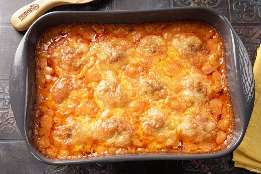 Накройте форму фольгой и готовьте в духовке при температуре 180 градусов около 40-45 минут.