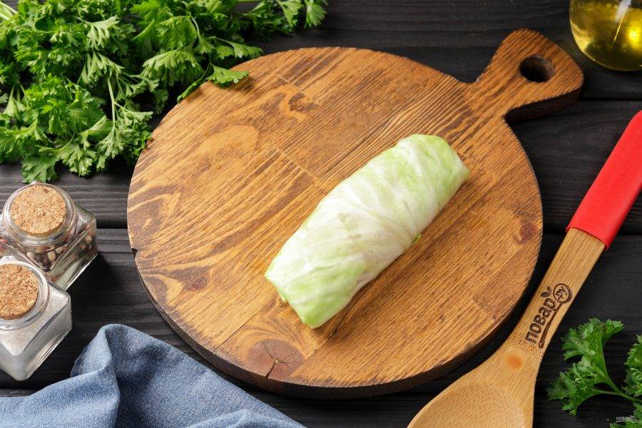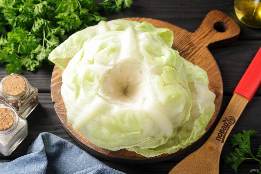 Заверните кочан в пакет и положите в микроволновую печь на 10-15 минут. После аккуратно удалите мягкие листья.