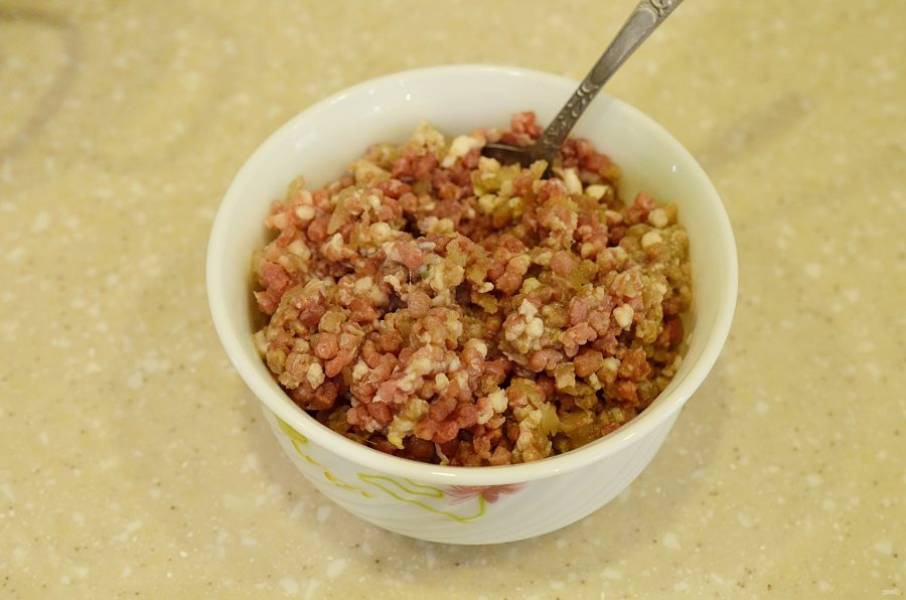 Мясо вместе с луком и чесноком пропустите через мясорубку.