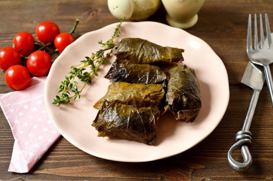 Долма — восточный вариант голубцов, но вместо капусты используются виноградные листья. Получается очень вкусно за счет необычного привкуса от винограда. Обязательно попробуйте приготовить!