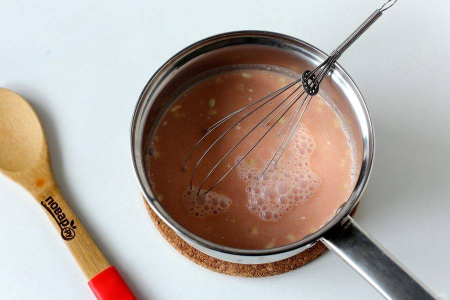 Для соуса соедините сметану, томатную пасту и измельченный чеснок. Соль добавьте по вкусу.