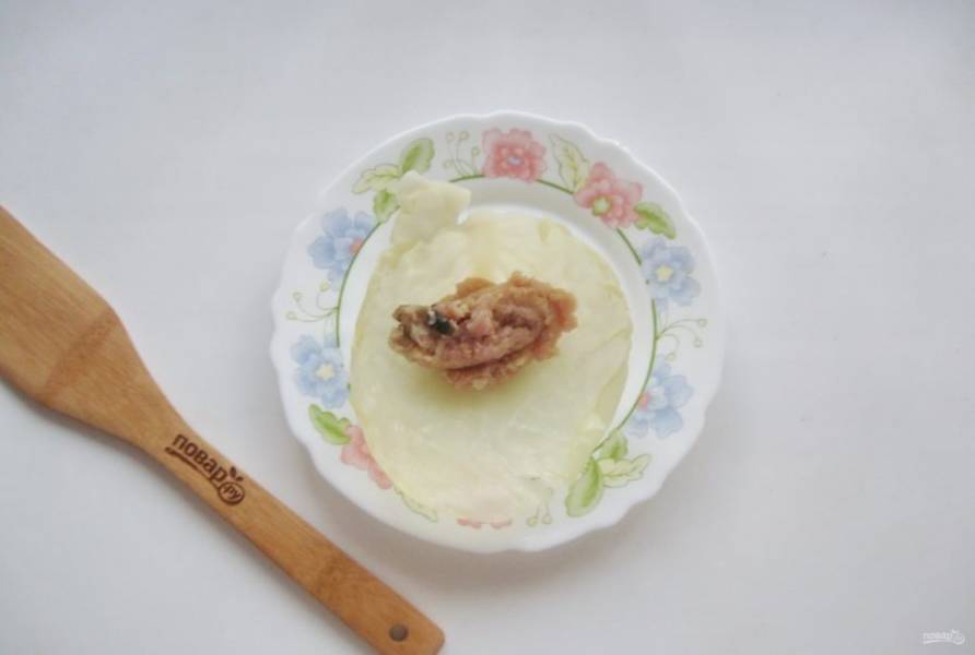 Удалите утолщение на капустном листе и выложите порцию фарша.