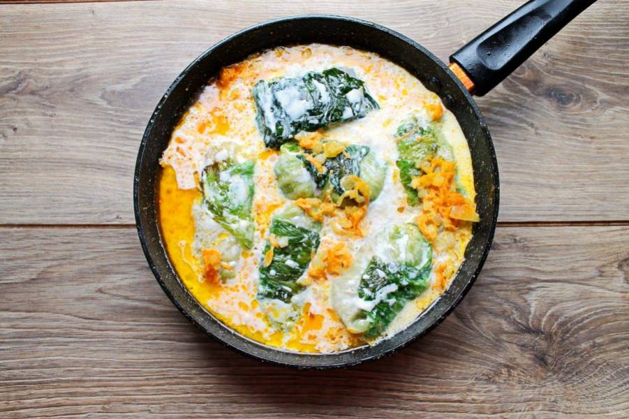 Готовьте голубцы на медленном огне в течение 25-30 минут. Снимите с огня и подавайте к столу.