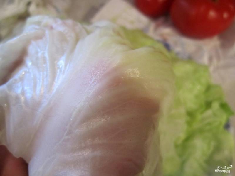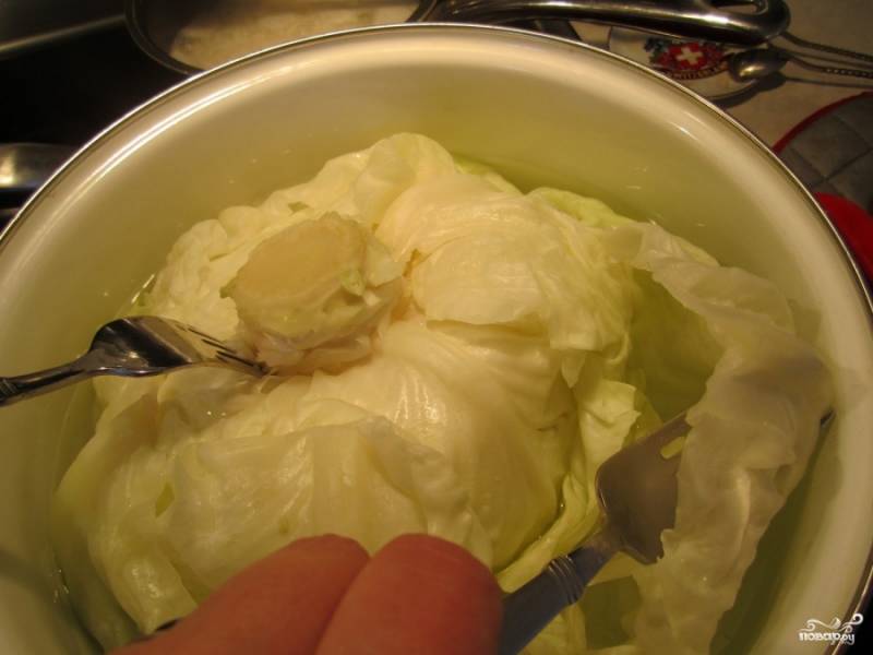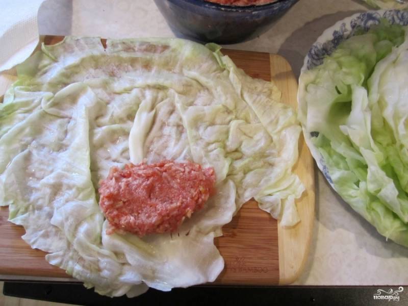 Для того, чтобы завернуть мясо в листья капусты вы должны слегка ее прокипятить, чтобы она стала мягче.