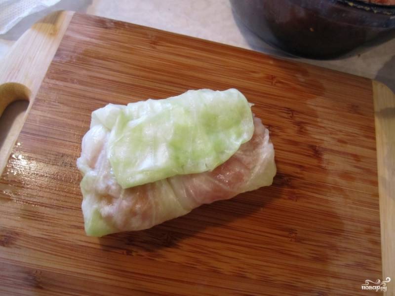 Убедитесь в том, что все плотно и аккуратно заложено, чтобы голубец не разваливался. Проделайте тоже самое с остальным фаршем.