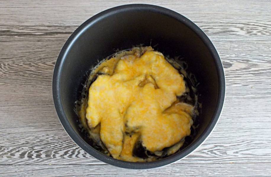 По завершении 15 минут, присыпьте каждый стейк рыбы натертым сыром. Выключите режим "Выпечка", включите "Подогрев" и оставьте на 15 минут.