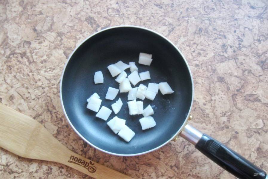 Обжарьте сало в сковороде.