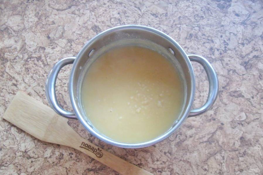 Доведите горох с водой до кипения. Образуется много пены, которую следует снять. После сделайте минимальный огонь и варите кашу на небольшом огне периодически перемешивая, пока весь горох полностью не разварится.