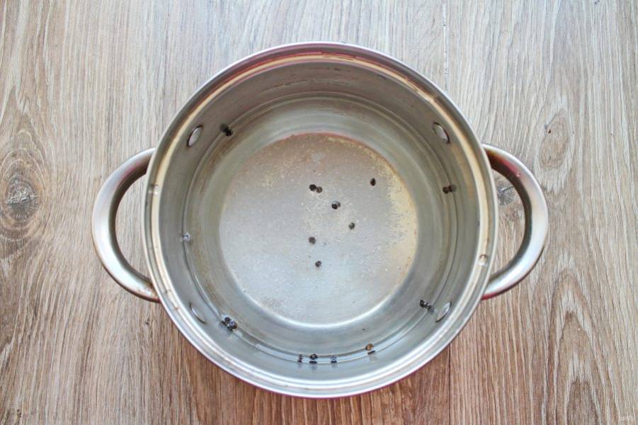 В кастрюлю налейте воду, положите перец, соль, сахар и варите после закипания в течение пяти минут.