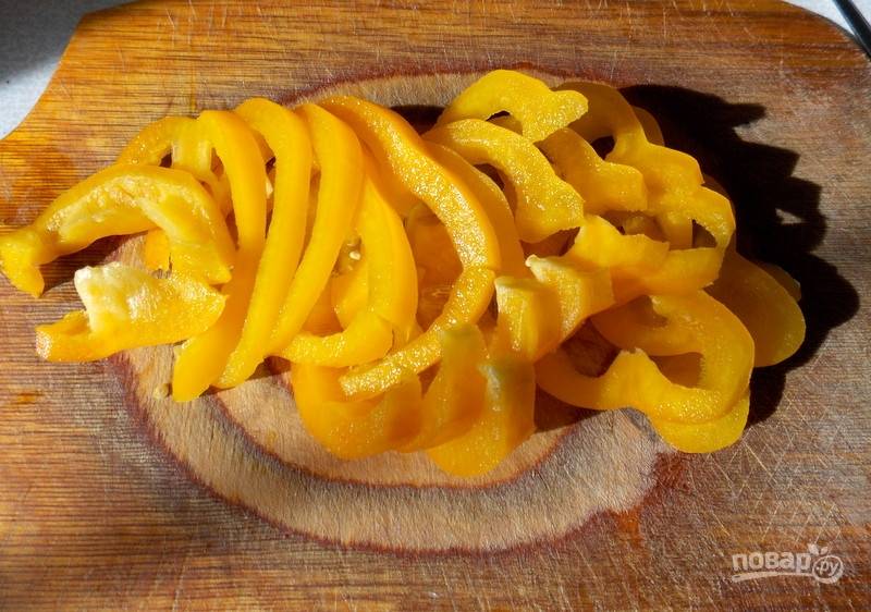 Порежьте перец кольцами или полукольцами.
