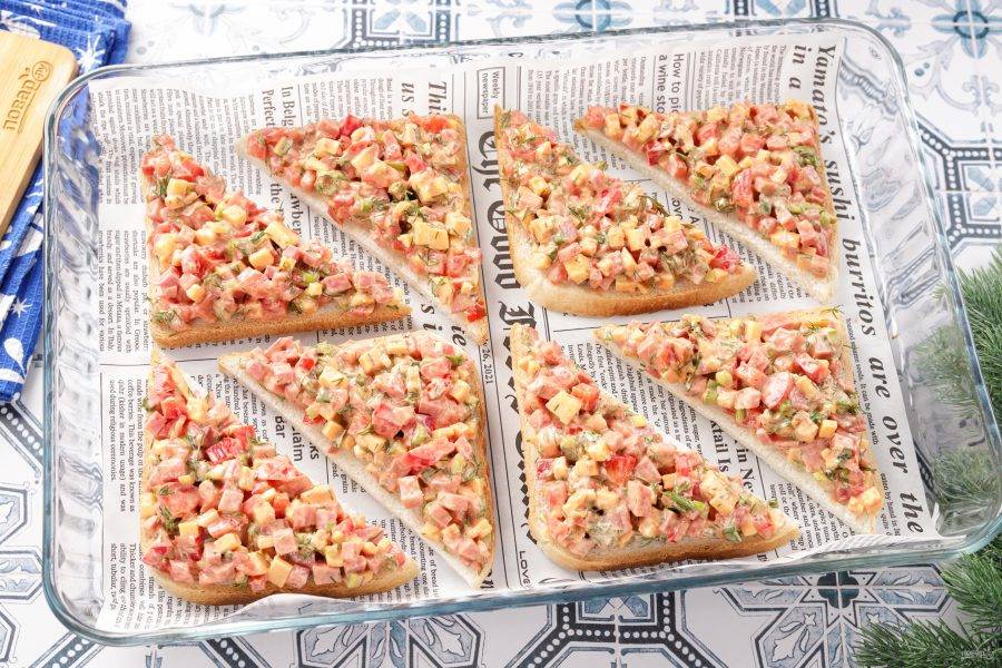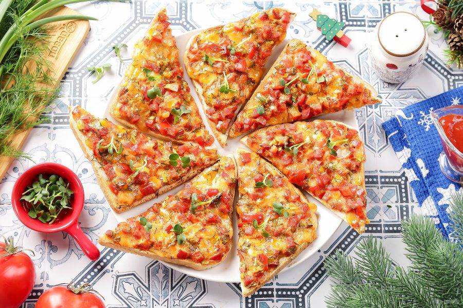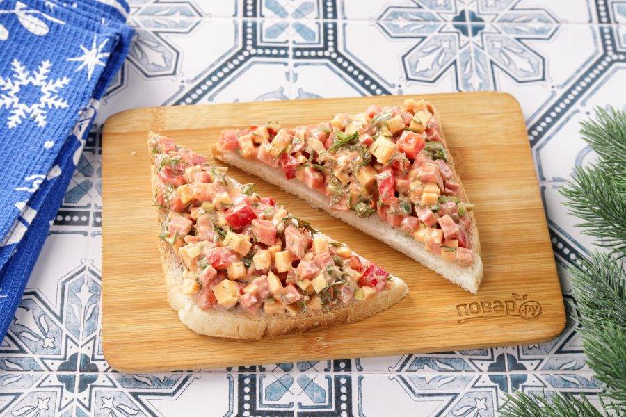 В преддверии Нового года обратите внимание на этот вкусный и простой рецепт. Горячие бутерброды получаются красочные и аппетитные, непременно окажутся в центре внимания на праздничном столе!