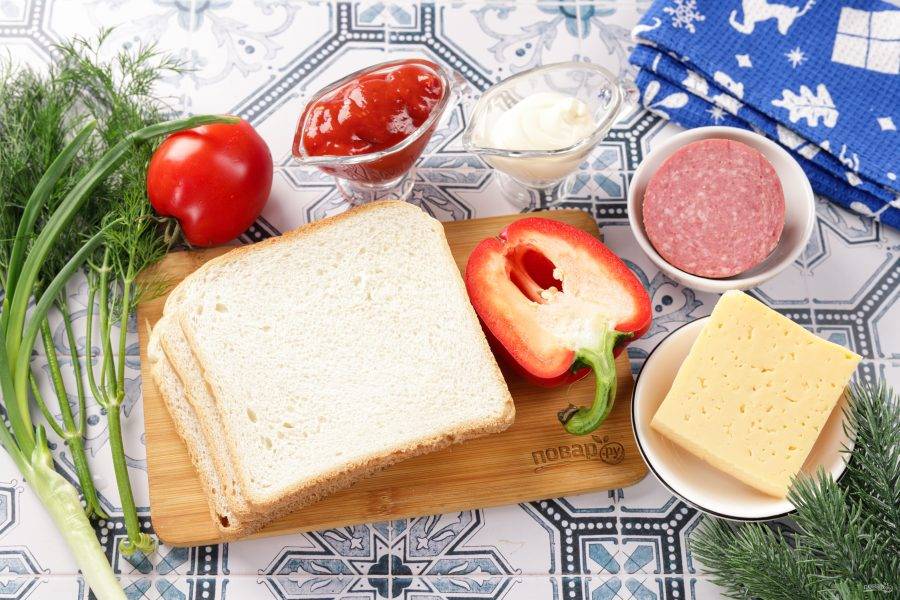 Подготовьте все ингредиенты по списку. Я использовала белый хлеб для тостов, но вы можете взять тот, который вам больше нравится.
